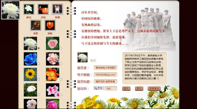7月6日下午,yl88858cc学工第四党支部组织生活,集中参观了网上北京卢沟桥抗日战争纪念馆,以物联网学工第四党支部的名义在网上向先烈们敬献了花圈。在全景纪念馆的参观中,同学们缅怀先烈、追思英魂,受到了深刻的爱国主义教育,先烈们的抗战事迹激励着大家树立坚定的理想信念,学好专业知识、掌握本领,为祖国的繁荣富强、为中华民族的伟大复兴贡献自己的一份力量。参观之后,大家开展了庄严的宣誓活动。