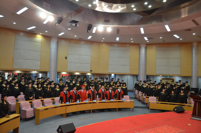 最后,周健书记宣读学士学位授予决定,全体与会领导、导师上台为身着学士服的同学们一一拨苏正冠,颁发学士学位证书并合影留念。
