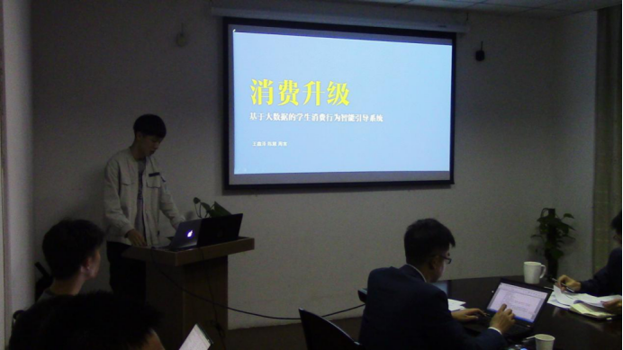 参赛选手们积极上台向老师和同学展示作品,参赛项目包括“图书馆选座”、“大学生消费情况分析”等贴近大学生生活的作品,还有诸如“健康饮食系统”、“智能停车位”等迎合社会需求的项目。本次比赛共选出特等奖1名,一等奖1名,二等奖2名和三等奖6名。