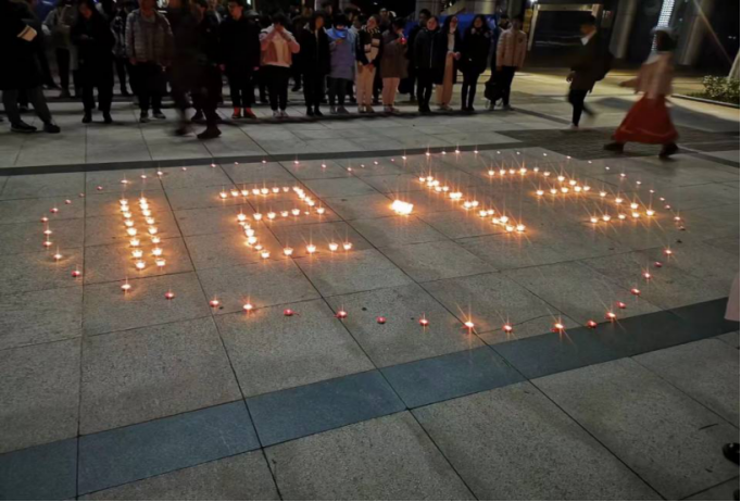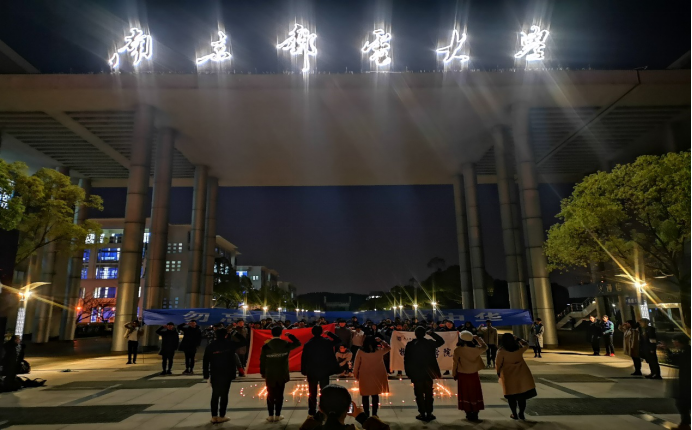 12月13日晚,yl88858cc,yl88858cc2018级学生在辅导员李桐安老师的带领下,在学校仙林校区南门口组织开展侵华日军南京大屠杀死难者悼念仪式。