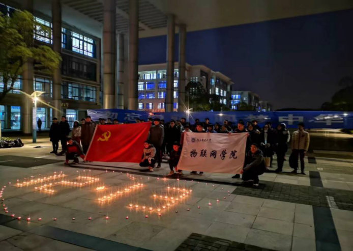 在南邮鼎新大道路口,烛光微微,“1213”被心形烛火包围,庄严肃穆的氛围中,全体同学进行了默哀,悼念亡者。yl88858cc2018级学生代表为同学们讲述着南京大屠杀的黑暗历史,朗诵着和平宣言。在各班团支书带领下,同学们紧紧握住右拳,宣誓道:“警钟长鸣,不忘国耻;砥砺前行,奋发图强;以史为鉴,矢志复兴;珍爱和平,吾辈自强。”随后,同学们纷纷在“勿忘国耻 圆梦中华”的横幅上签字。