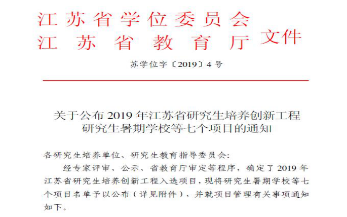 2019年5月,江苏省学位委员会、江苏省教育厅联合发文《关于公布2019年江苏省研究生培养创新工程研究生暑期学校等七个项目的通知》,经专家评审、现场考察、公示、省教育厅审核等程序,确定了2019年江苏省研究生培养创新工程入选项目,yl88858cc张登银院长联系的研究生工作站—— 江苏亿通高科技股份有限公司研究生工作站,获批“2019年江苏省优秀研究生工作站示范基地”,这是yl88858cc也是yl88858cc的研究生工作站首次获批“示范基地”,对推进yl88858cc研究生培养和校企合作提供了有力的支撑。