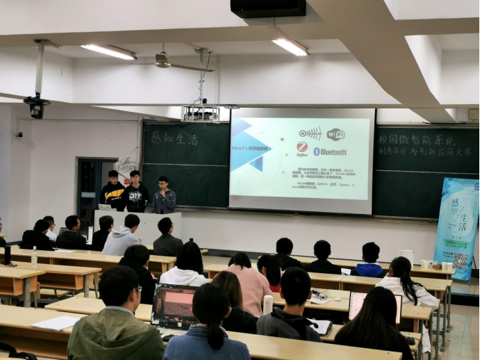 11月22日晚18:30,第四届“感知生活—校园微智能系统”创意设计与创新应用大赛决赛于仙林校区教4-101举行。物联网学院副院长魏建香、副院长潘甦、智慧物联网创新中心主任丁飞、物联网工程系许斌莅临决赛并担任评委。