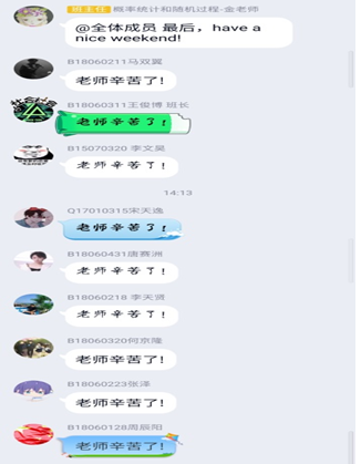 余亮老师说了,请忽略我的发型,好好听课,一个月后我又是一枚长发飘飘的美男子。他还说:“网络教学给教师准确把握学生真实的听课状态和听课效果带来了很大挑战。为此,我积极地联系了的每一位同学,获得了许多学生的真实感受和改进教学方式方法的思路”。给余老师的认真打call!