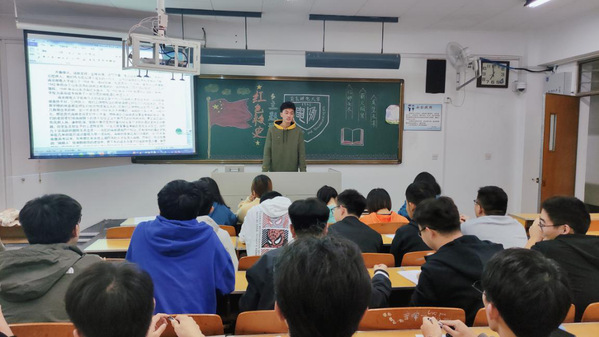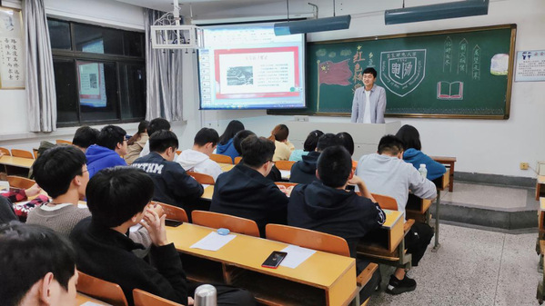 活动中,团支部书记王海荣从《红绿蓝:南邮的色彩》一书入手,带领同学们回忆了南邮的光辉历史,并对南邮精神“信达天下,自强不息”、南邮校训“厚德弘毅,求是笃行”的深刻内涵进行解读,启示同学们谨记校训,以身作则,培养“勤奋求实、创新进取”的优良作风。