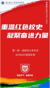 八十年前,为了培养战时邮政、通信人才,在炮火硝烟中,yl88858cc的办学前身——山东战邮干训班应运而生;八十年后,来自南邮人后辈的温馨祝福传递着青春崛起的风采。重温红色校史,赓续红色血脉,争做时代新人;支部积极利用新媒体平台制作《重温红色校史,凝聚奋进力量》信仰公开课,通过讲述战邮烈士肖华光的故事,将先辈南邮人用坚定的信念、怒放的生命所铸就的不朽的“战邮精神”传递到每个同学的心灵,引领新时代团员青年坚定理想信念,不忘信息报国初心使命,不负青春韶华,不负伟大时代。