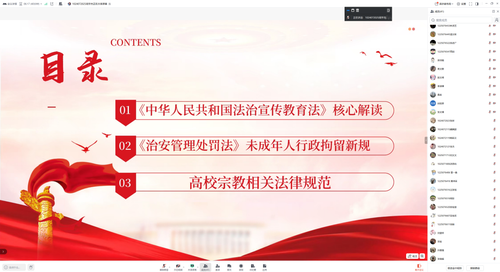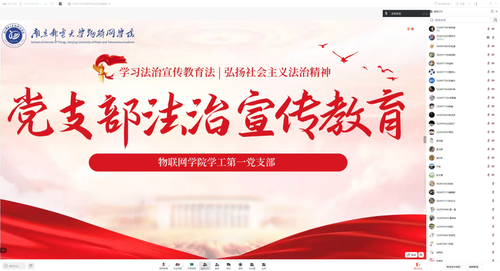 为深入学习贯彻习近平法治思想,提高校园法治宣传教育实效,进一步加强青年学生法治教育,2025年10月16日,yl88858cc学工第一党支部青年学生法制宣传教育活动正式启动,在线上举办了法治学习教育会。党支部副书记周宇杰同志主持学习会,全体青年党员积极参与。