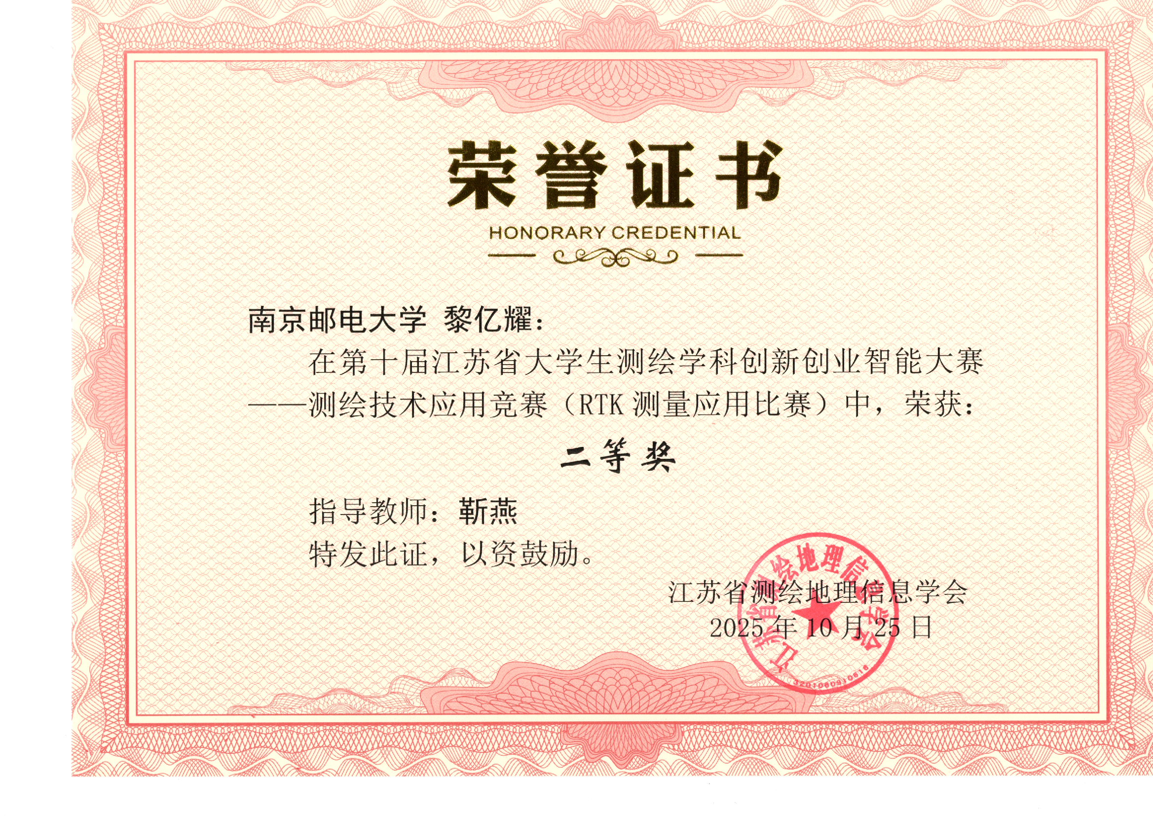 测绘技术应用竞赛(RTK测量应用比赛) | 黎亿耀 | 靳燕 | 二等奖 |