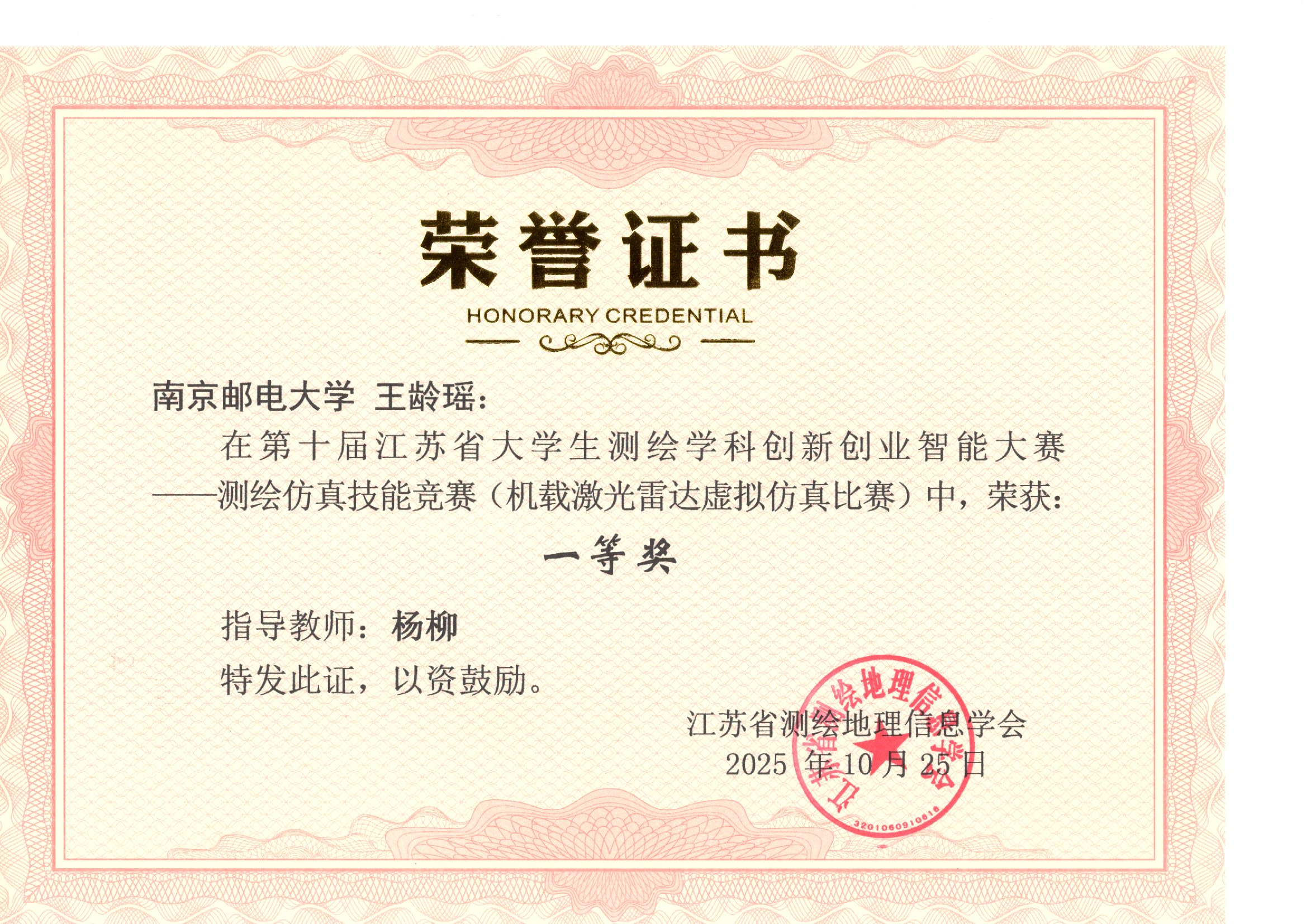 测绘仿真技能竞赛(机载激光雷达虚拟仿真比赛) | 王龄瑶 | 杨柳 | 一等奖 |