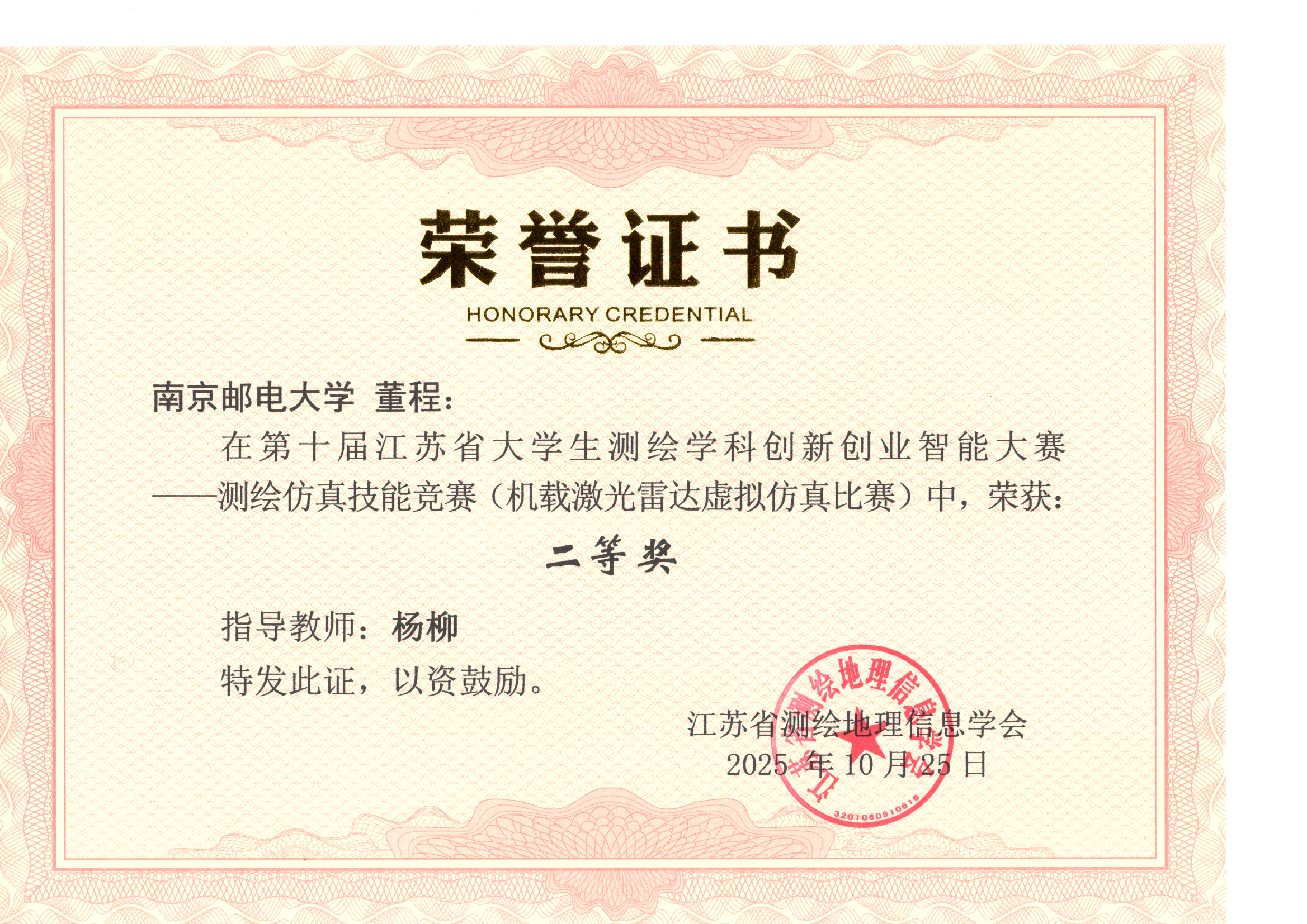 测绘仿真技能竞赛(机载激光雷达虚拟仿真比赛) | 董程 | 杨柳 | 二等奖 |