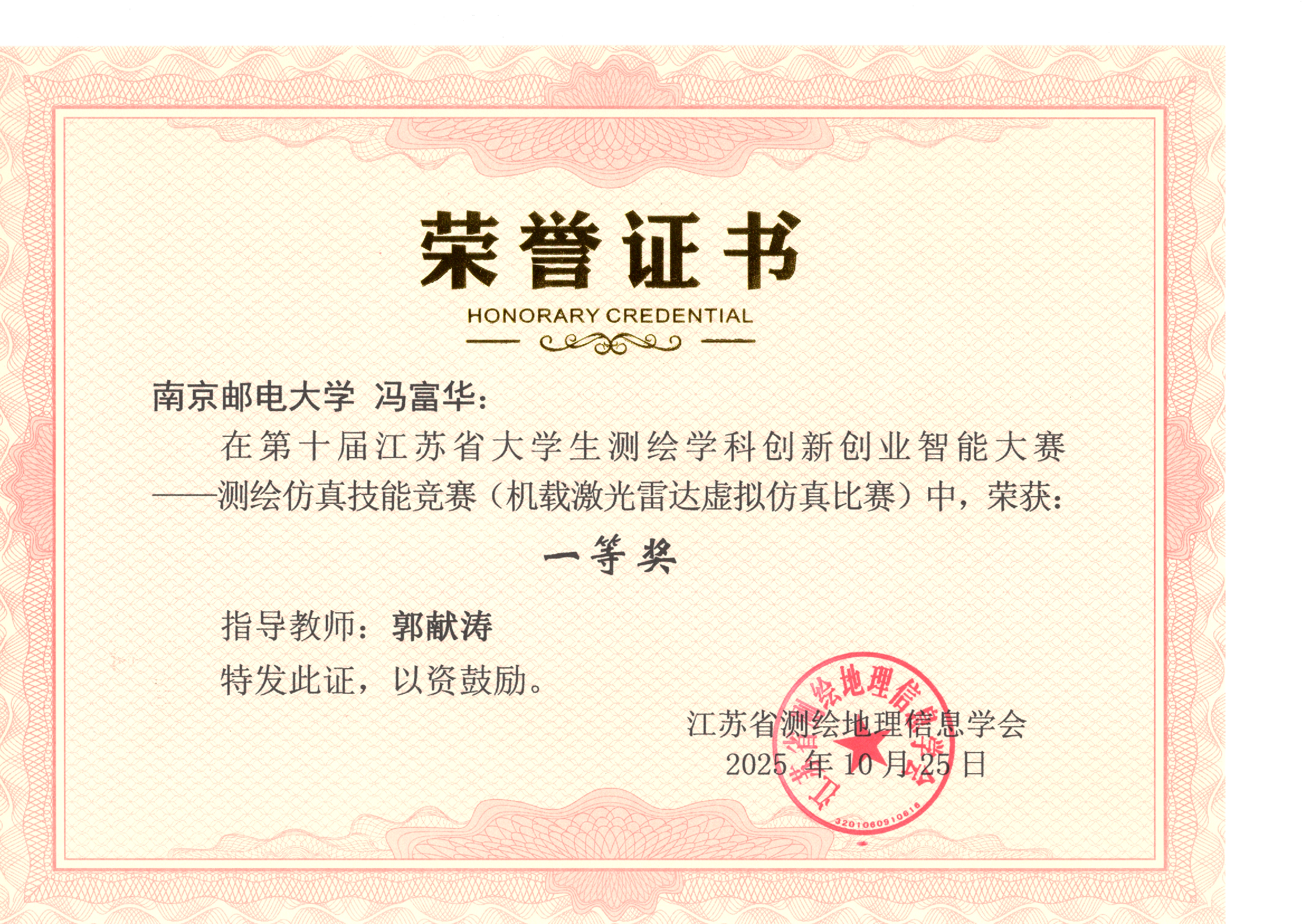 测绘仿真技能竞赛(机载激光雷达虚拟仿真比赛) | 冯富华 | 郭献涛 | 一等奖 |