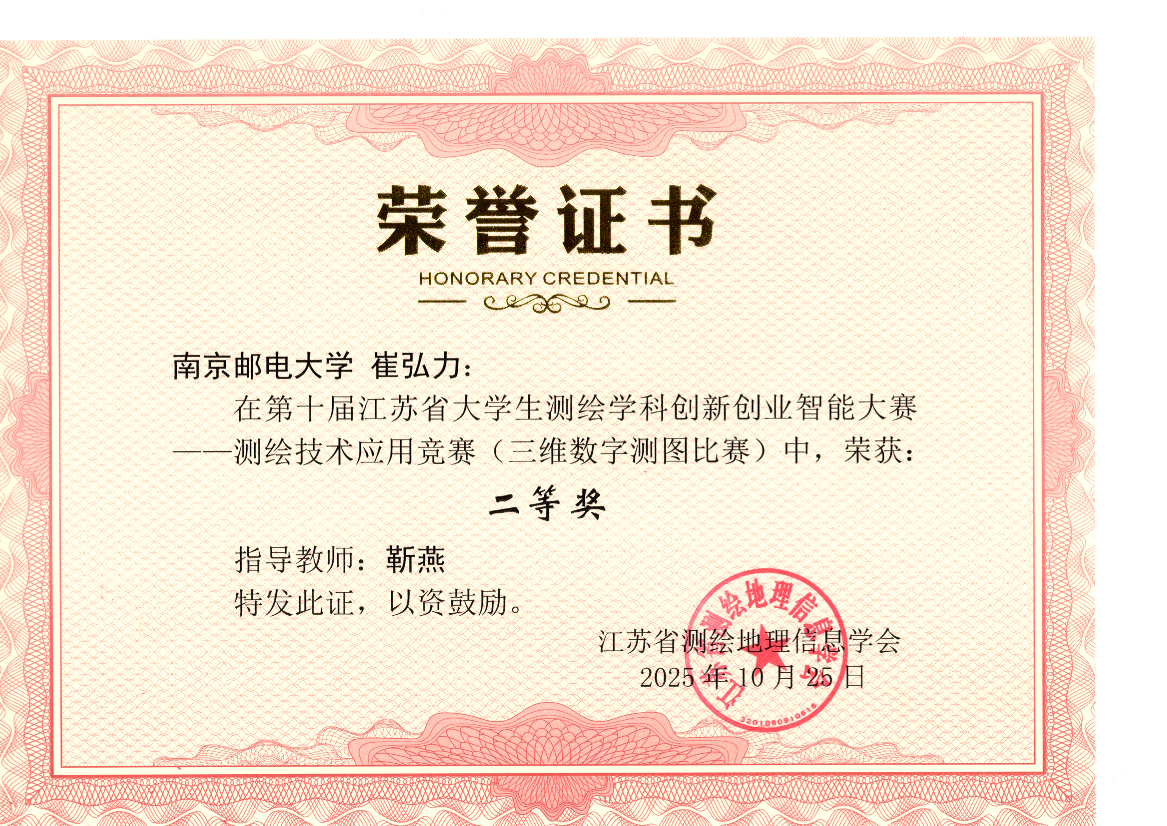 测绘技术应用竞赛(三维数字测图比赛) | 崔弘力 | 靳燕 | 二等奖 |